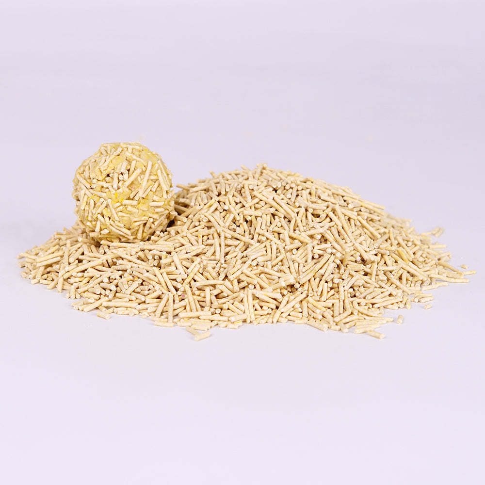 Descubre la nueva arena para gatos con limón, diseñada para ofrecer una experiencia de limpieza superior. Nuestra fórmula de tofu es ultra absorbente, asegurando que los desechos se aglomeren rápidamente para una fácil limpieza. Además, su delicada fragancia a limón mantiene el ambiente fresco y agradable.